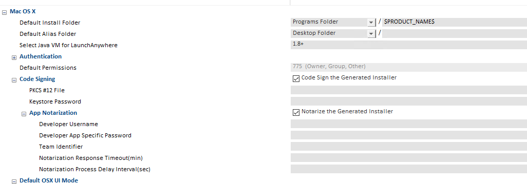 On the Platform > Project page, under Mac OS X > App Notarization, InstallAnywhere 2022 R2 now includes a new field named Team Identifier to support the notarization of OS X-based installers.