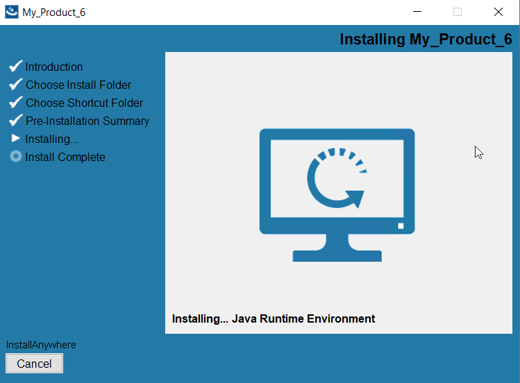 If both progress bar options are set to No, then progress of installer will not be displayed at all.The following is an example when both progress bar options are disabled: