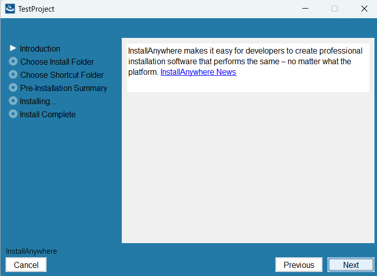 InstallAnywhere 2024 R1 introduces a new component named, IATextPane, which enables the custom code panels to support multiple-line contents, URLs, and DPI scaling. This component is available in the com.zerog.ia.api.pub.controls package and can be used in Custom Code panels. The Javadocs for this component are available in the \javadoc\com\zerog\ia\api\pub\controls directory.