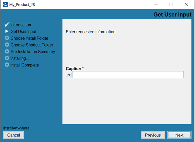 | • | disable the Next button if the Disable Next button if mandatory fields are empty checkbox is selected in the Get User Input - Advanced panel. |