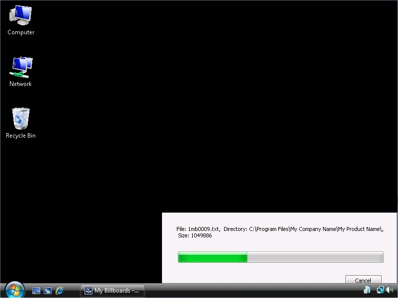 As shown in the sample screen shot, the progress bar is shown, but no billboard is displayed. The black background is the end user’s desktop.