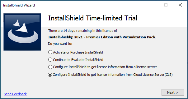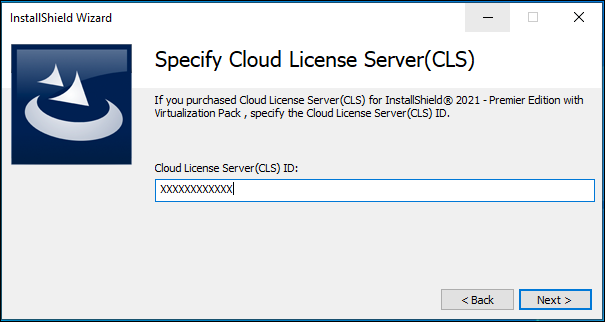 If your organization purchased a Cloud License Server (CLS) instance for InstallShield, you need to configure the Cloud License Server instance ID when you install InstallShield on your machine.