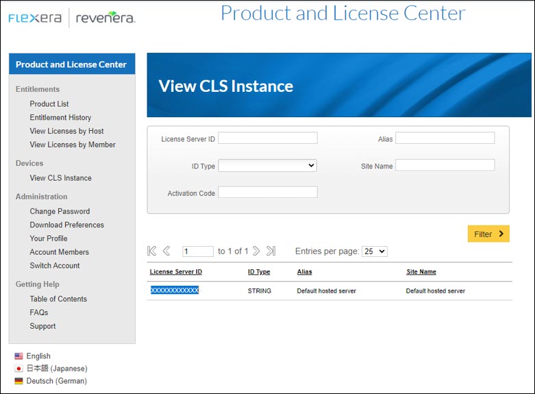 | 5. | In the left navigation, under Devices, click View CLS Instance. The View CLS Instance page lists all the Cloud License Server IDs which your account is entitled. |