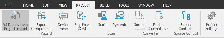 Opens the Dynamic Scanning Wizard, which monitors a running executable for all .dll and .ocx dependencies files and automatically adds them to your project. |