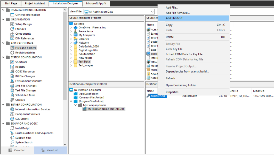 The Files and Folders view has been enhanced by adding an option to create shortcut in Basic MSI project.