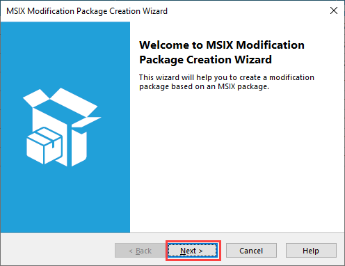 | 2. | In the MSIX Modification Package Creation Wizard, click Next.![]() |