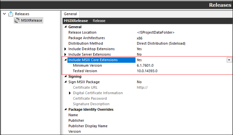 When you create an MSIX Package in a Basic MSI Project or MSIX Project, set the value in the Release view as below: