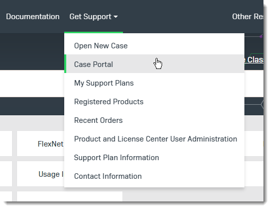 For customers who have purchased a maintenance contract for their product(s), you can submit a support case or check the status of an existing case by first logging into the Revenera Community and then making selections on the Get Support menu, including Open New Case and other options.