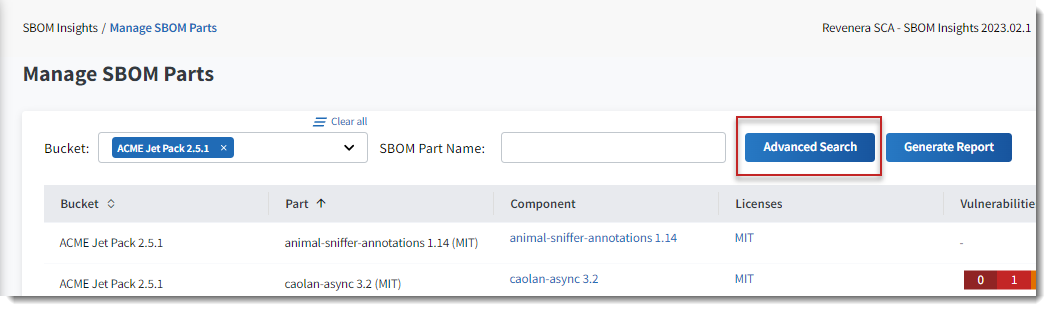 To generate SBOM Insights reports in previous releases, users had to download a report package, configure individual report scripts, and then run them. This release introduces a new reporting framework that enables users to easily generate reports directly from the Manage SBOM Parts page in the SBOM Insights UI. Users select a bucket, click Generate Report, and then, from a slideout, select and generate the report.